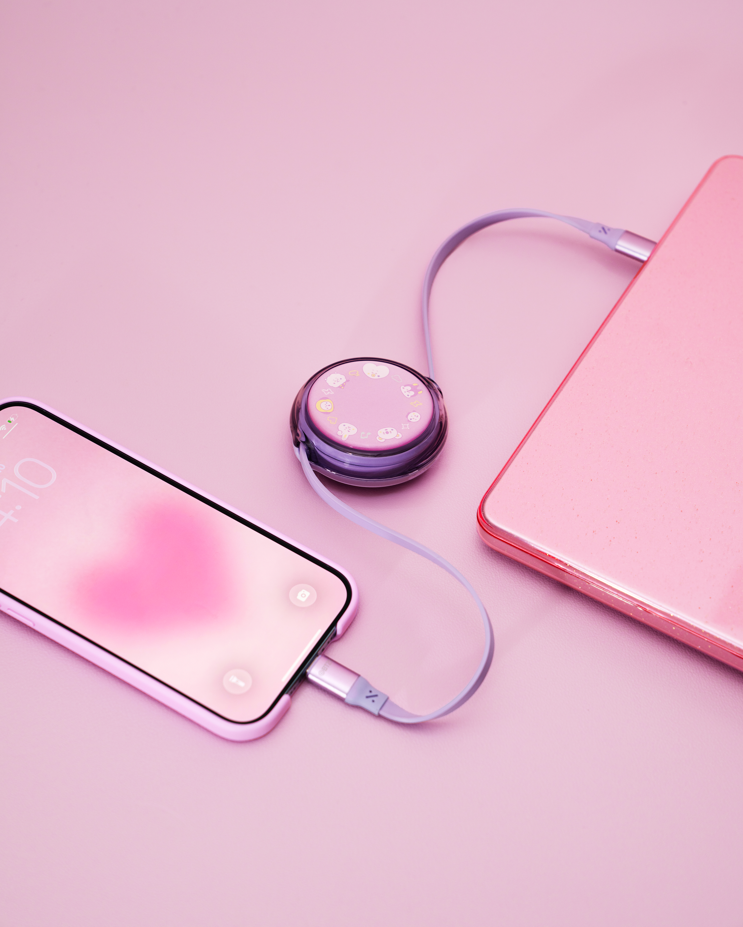 Keep your charging game strong and stylish with the iOttie with BT21 100W Retractable USB-C Cable. Featuring the BT21 characters, it’s a fun and functional must-have for those who want power without the mess. The tangle-free, compact design makes it easy to pack and play anywhere, while the smart E Marker Chip delivers up to 100W of fast, efficient charging. Plug in, pop out the cable, and let the good vibes flow wherever you go.