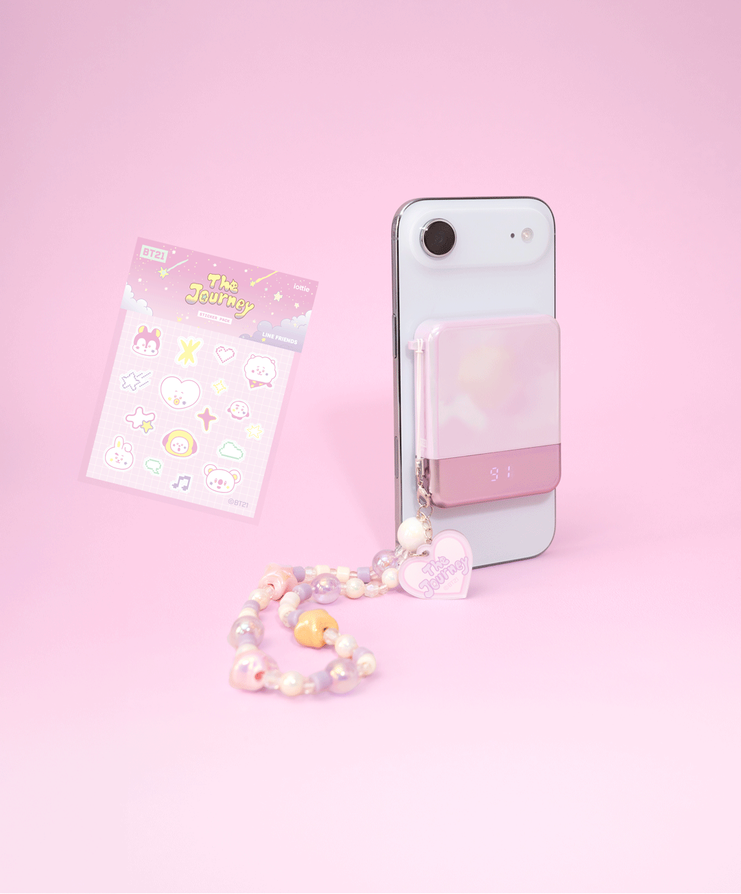 Stay powered up in style with the iOttie with BT21 Velox 5K Power Bank, pairing iconic design with everyday function. Snap onto your MagSafe or Qi-compatible phone, or plug in directly for an instant charge, while the LED display shows your battery level at a glance. Wrapped in an iridescent exterior with a beaded phone charm and BT21 stickers, Velox delivers fast charging and flair in one compact design.